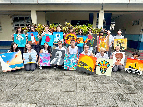Entre os temas explorados estiveram “O Bem”, ERER (Educação para as Relações Étnico-Raciais), Surrealismo, Pontos Turísticos do Espírito Santo, Silhuetas Africanas e Arte Abstrata. Para materializar suas ideias, os estudantes experimentaram técnicas variadas, como aquarela, giz de cera derretido, String Art, pintura acrílica e outras abordagens que permitiram aos alunos ampliar seu repertório criativo.