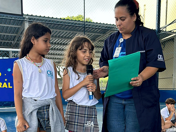 No Centro Educacional de Aracruz (CEA), alunos do 3º Ano “B” do Ensino Fundamental realizaram um encantador “Momento Cultural”, orientado pela professora de Língua Portuguesa e regente da turma, Jenniffer Abreu Scopel Alves. O evento, realizado na quadra poliesportiva da escola, teve como tema “Poemas Infantis” de Cecília Meireles, oferecendo aos estudantes uma experiência enriquecedora de expressão e integração.