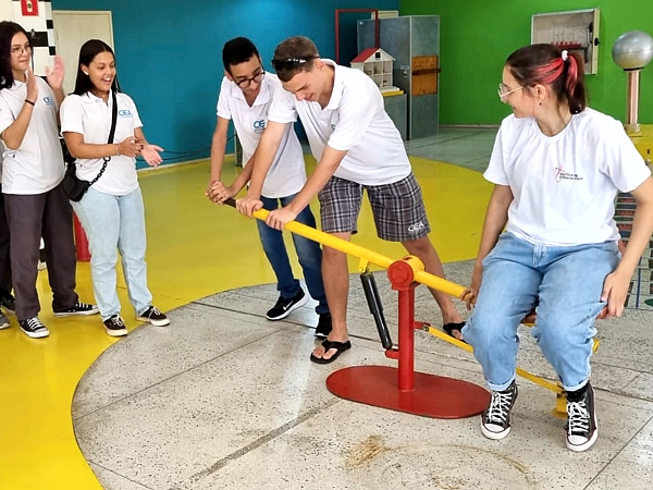 Os alunos do Ensino Médio, da turma “A”, visitaram a Escola da Ciência: Física, localizada no Parque Moscoso, em Vitória/ES, no dia 21 de setembro, e os estudantes da turma “B”, no dia 27 de setembro. Esta instituição é reconhecida por proporcionar aos estudantes a oportunidade de interagir com mais de trinta equipamentos científicos, que auxiliam na compreensão de conceitos físicos de forma lúdica e prática.