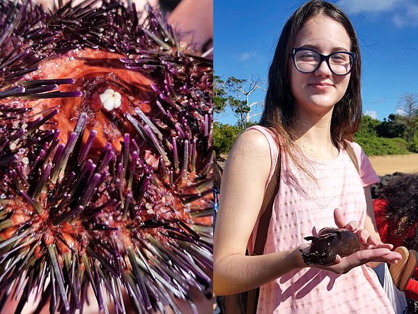 “Na aula prática na orla de Aracruz, fizemos ação de recolhimento de lixo pela praia, vimos diversos animais marinhos e algas relacionados à matéria estudada e podemos ter trocas de experiências”. Ana Jhuli Bortolozzo Maulaz, aluna da 2ª Série.