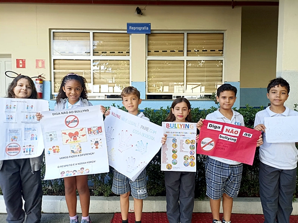 Após estudarem o gênero textual “Campanha de Conscientização”, os estudantes do CEA foram desafiados a confeccionar cartazes sobre o tema “Bullying”, com o apoio da família. O trabalho incluiu a criação de mensagens e o uso de imagens para transmitir a importância de combater o bullying nas escolas. O resultado culminou em uma apresentação em sala, onde cada aluno pôde compartilhar o material produzido com os colegas.