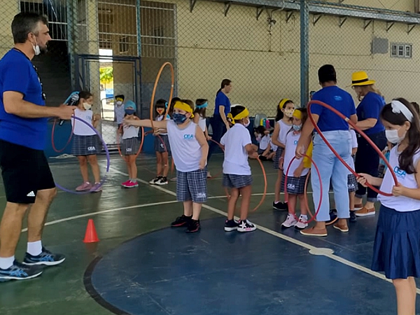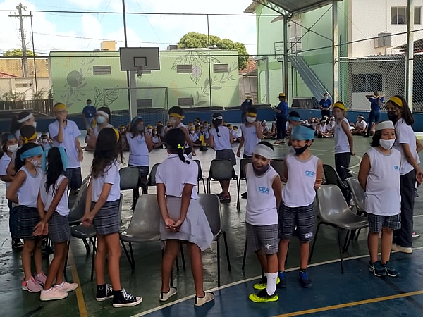 Divididos em equipes, sendo do 1º A e 5º A, da equipe amarela, do 2º A e 3º A, da equipe azul e do 3º B e 4º A, da equipe branca, os estudantes puderam se divertir e socializar em uma gincana que contou com muitos momentos engraçados. A atividade em sua maioria aconteceu no pátio e na quadra poliesportiva da escola.