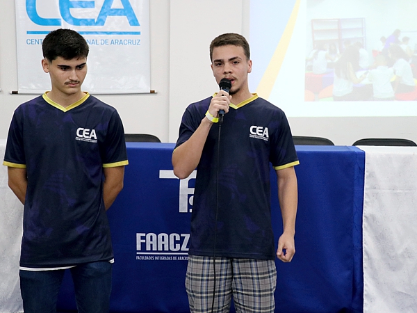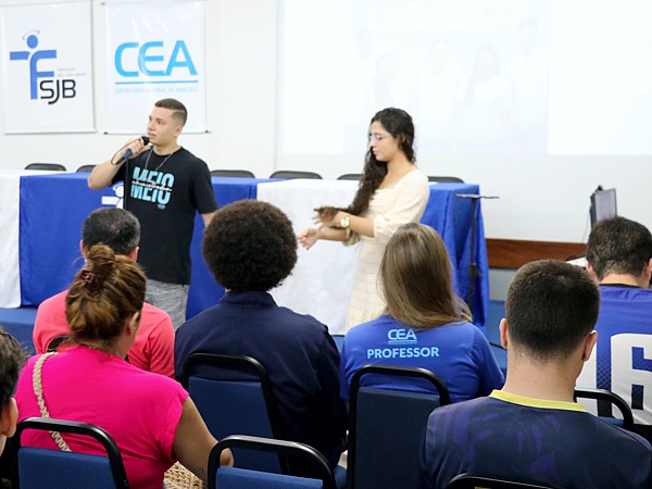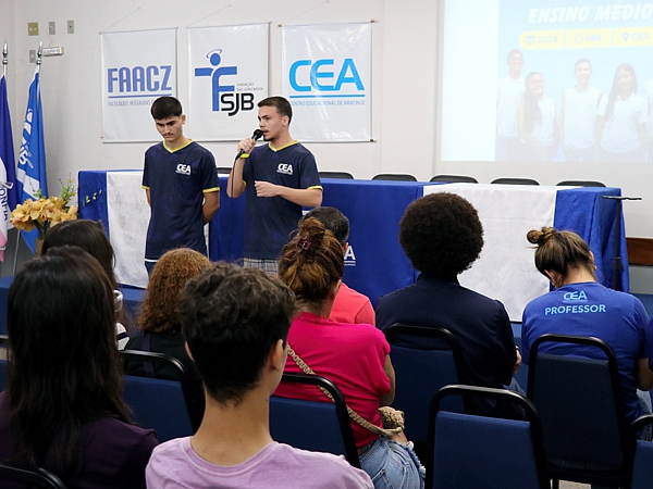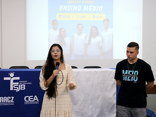 O encontro também foi enriquecido com depoimentos de ex-alunos do CEA, hoje estudantes da FAACZ, que compartilharam suas experiências no Ensino Médio da instituição. Matheus Saldanha Sibien, do 4º período de Administração, e Sthefany Scarabelle Rampineli dos Reis, do 4º período de Psicologia, relembraram sua trajetória no CEA, destacando o apoio e os aprendizados adquiridos. Além disso, os alunos atuais do Ensino Médio, Nicolas Escarabelle Rodrigues e Rubens Zanchetta Morelato Filho, falaram sobre o cotidiano dos estudos e a rotina na escola, proporcionando uma visão mais atualizada para os futuros ingressantes.