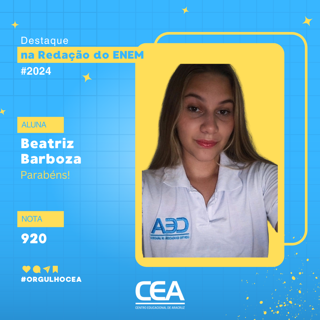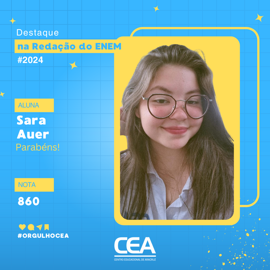 No Centro Educacional de Aracruz (CEA), o Enem 2024 trouxe excelentes resultados para diversos ex-alunos da instituição. Doze egressos do Ensino Médio alcançaram notas entre 800 e 940 pontos na redação, evidenciando a qualidade do ensino e a dedicação dos estudantes. Esse sucesso tem como base o protagonismo dos próprios alunos e o suporte fundamental da professora Lidimara Soares Monteiro, responsável pela disciplina “Oficina de Redação”, que auxilia os jovens na busca por uma vaga em instituições de Ensino Superior.