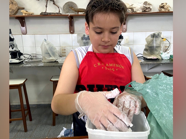 Larisse Moraes de Carli, aluna do 6º Ano do CEA, expressou sua gratidão pelo método de ensino adotado pelo professor Renan, destacando a relevância direta para o conteúdo estudado em sala de aula. Em suas palavras: “O tio fez essa aula com a gente, pois estamos estudando os tipos de rocha, e o fóssil é um tipo de rocha sedimentar. Amei fazer essa aula”.