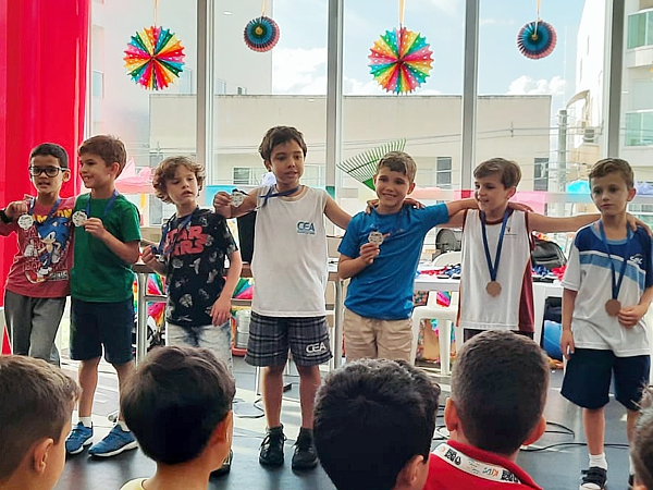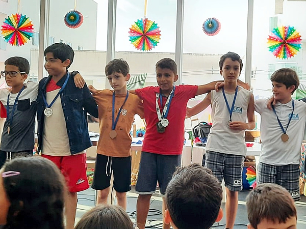Nesta etapa do CIMEX, os alunos do CEA conquistaram medalhas e se destacaram em suas categorias. No Sub 08 Feminino, Nicole Hemerly Cáo, do 2º Ano “A”, conquistou o 5º lugar, enquanto Ana Beatriz Souza Gasparini, do 1º Ano “A” ficou na 6ª posição e Pétala Coli Perini Francisco, do 3º Ano “B”, garantiu o 7º lugar. No Sub 08 Masculino, Theo Zamborlini Sossai, do 2º Ano “A”, conquistou a 4ª posição.