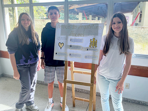 Também com atuação expressiva no evento, as turmas do 9º Ano, do turno matutino, realizaram apresentações para alunos do 1º ao 5º Ano (matutino) do Ensino Fundamental em salas temáticas que abordaram as heranças africanas na alimentação, na linguagem e matemática, e na música. Os trabalhos foram orientados pelos professores Fernanda Rodrigues Wolkartt e Matheus Pignaton Nascimento.