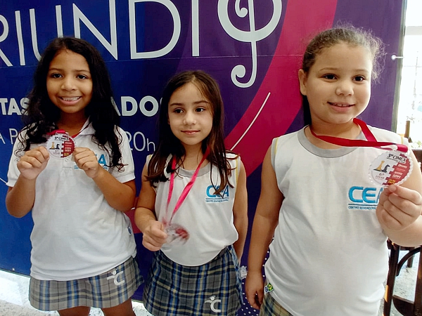 Além disso, a diretora escolar do CEA, prof.ª Adriana Recla Sarcinelli, também marcou presença nessa edição do CIMEX, demonstrando o apoio da administração da escola ao envolvimento dos alunos em atividades intelectualmente estimulantes e enriquecedoras. A cereja do bolo, é claro, foi a conquista de medalhas por parte dos alunos do CEA em várias categorias. Vejamos alguns dos destaques: