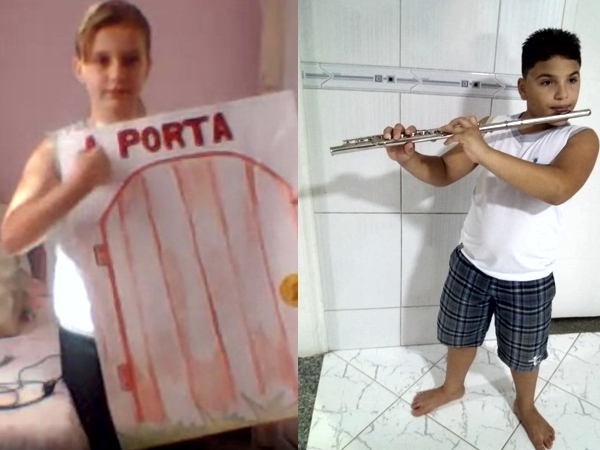 “Tocar flauta foi bem legal. Escolhi uma música para tocar, minha mãe me ajudou a ensaiar. Não foi difícil tocar porque temos aula de arte musical na escola”. Davi Pereira Batista Ravani