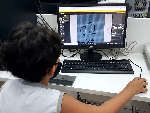 Orientados pela professora Bruna de Lima Rodrigues, os alunos do 1° e 2°Ano do Ensino Fundamental, do Centro Educacional de Aracruz (CEA), se aventuraram na disciplina de Tecnologia e Inovação, criando pixel art ou arte pixel, que é uma forma de arte digital na qual as imagens são criadas ou editadas tendo como elemento básico os pixels.