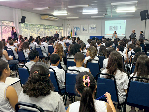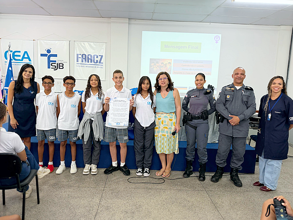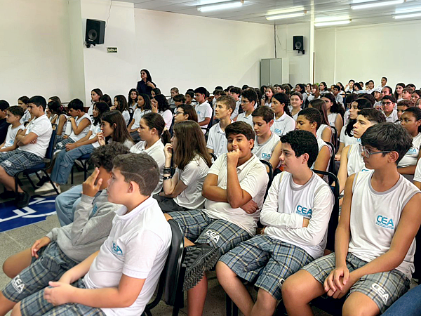 Dois momentos marcaram a culminância do projeto. No dia 11 de março de 2026, os alunos participaram de uma palestra educativa no auditório do CEA com os sargentos Leonardo Sant’Ana e Raiane Soares de Miranda, da Patrulha Maria da Penha do 5º Batalhão de Polícia Militar (5º BPM), que dialogaram sobre o combate à violência contra a mulher. No turno matutino, estiveram presentes os alunos dos 6º e 7º Anos; no vespertino, participaram os alunos dos 6º, 7º e 8º Anos.