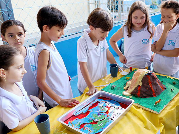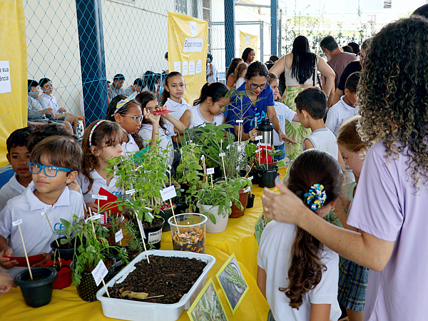 A feira apresentou uma progressão de conhecimentos ao longo dos segmentos. Os Anos Iniciais do Ensino Fundamental, do 1º ao 4º Ano, encantaram o público com temas como compostagem, ervas medicinais e experimentos visuais, entre eles a “Lâmpada de Lava”. O 5º Ano matutino apresentou o tema “Da criação à prototipação em 3D”, exibindo maquetes e objetos produzidos no Laboratório Maker por meio de impressora 3D. No turno vespertino, as turmas do 5º Ano seguiram o formato geral da feira, apresentando experimentos na quadra poliesportiva.