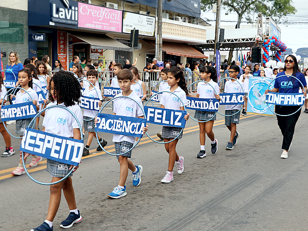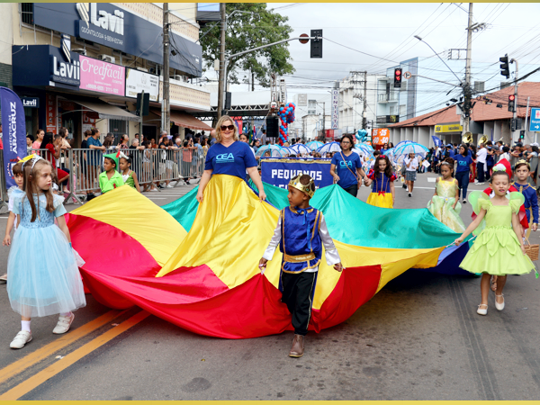 Estudantes e professores do Ensino Fundamental e Médio, além de colaboradores das equipes pedagógica e administrativa do CEA, participaram do desfile levando à avenida mensagens de pertencimento, criatividade e valorização da educação. Sob o olhar de autoridades municipais e da comunidade, o grupo apresentou parte da trajetória da escola e de sua mantenedora.