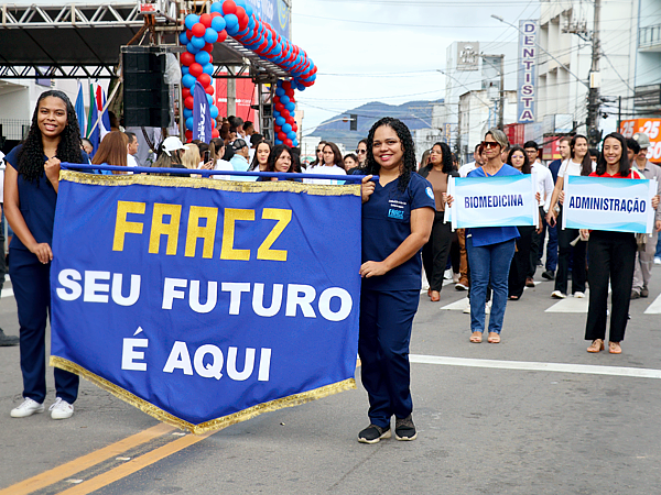 Universitários de diversos cursos de graduação da FAACZ também integraram a programação, reforçando a união entre as instituições de ensino. Os acadêmicos conduziram banners dos cursos de Administração, Ciências Contábeis, Direito, Enfermagem, Engenharia Mecânica, Psicologia, Sistemas de Informação e Biomedicina. A ala universitária trouxe como tema “FAACZ: Seu Futuro É Aqui”, e contou com a participação de docentes.
