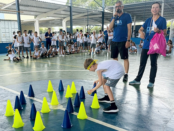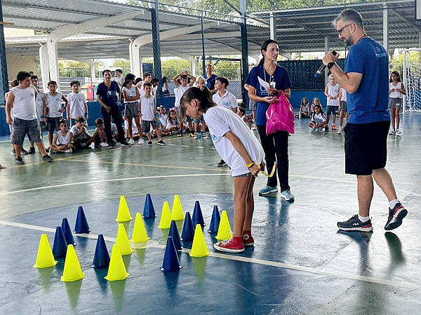 Os professores de Educação Física, Wendel Balarini Moro e Daniane Santos Portela da Fonseca, foram os responsáveis pela criação dos desafios e dinâmicas, promovendo cooperação, espírito esportivo e engajamento dos participantes. Durante as atividades, os alunos interagiram com colegas de diferentes turmas, compartilhando momentos de diversão e aprendizado. A Gincana Interativa aconteceu na quadra poliesportiva da escola e foi acompanhada de perto pela supervisora escolar Rafaela de Souza dos Santos.