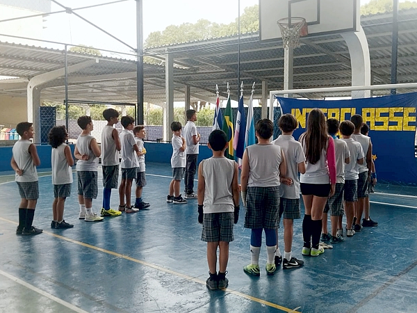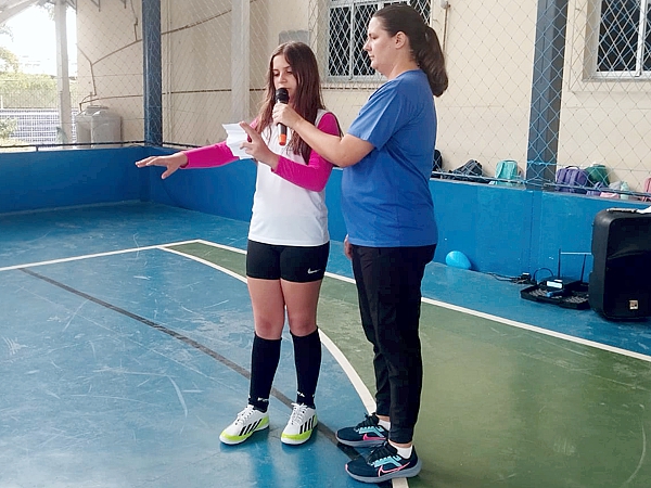 A cerimônia de abertura do Interclasse Vespertino começou com a execução do Hino Nacional, entoado por todos os presentes, e seguiu com o “Juramento dos Atletas”, liderado pela estudante Helena Tessarolo Del Pupo, do 6º Ano “A”. A aluna, junto aos demais competidores, reforçou o compromisso de respeito e amizade entre as equipes. Logo após, a professora de Educação Física Marinice Maziero explicou o regulamento da competição, cuja modalidade foi o Futsal.