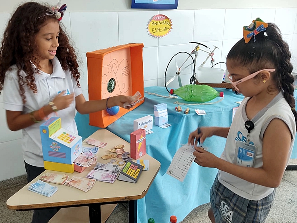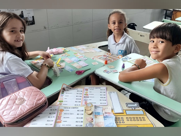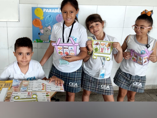 Os alunos do Ensino Fundamental do CEA foram desafiados a criar um mercadinho na sala de aula, utilizando brinquedos recicláveis e objetos produzidos com a colaboração das famílias, após explorarem temas como comércio e o valor do dinheiro. O objetivo era ensinar de forma divertida o sistema monetário, a soma, a troca de cédulas e moedas, além de incentivar o desenvolvimento de habilidades como raciocínio lógico, cooperação e empreendedorismo.