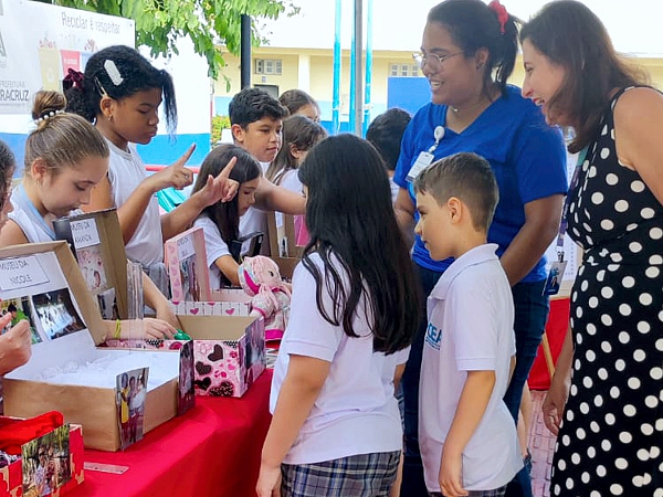 A culminância do trabalho aconteceu no pátio principal da escola, em frente à biblioteca “Prof.ª Maria Luíza Devens”. A atividade tinha como tema “Minha história no pequeno museu” e contou com a visitação de professores, funcionários técnicos-administrativos e operacionais, bem como da equipe pedagógica do CEA. A diretora escolar, prof.ª Adriana Recla Sarcinelli, também prestigiou o evento e ficou atenta ao que os pequenos diziam de forma entusiasmada.