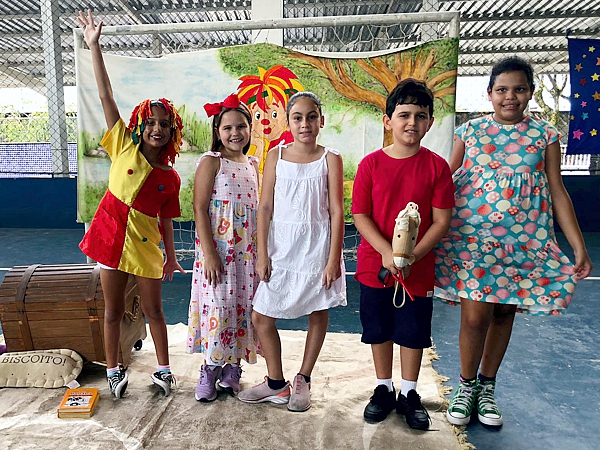 Orientados pela professora regente da turma, Kamila Biasutti Silva de Lima, os estudantes do 4º Ano, turma “A”, do Ensino Fundamental, do Centro Educacional de Aracruz (CEA), deram vida aos personagens do “Sítio do Picapau Amarelo”, criados pelo escritor brasileiro Monteiro Lobato. O momento aconteceu na quadra poliesportiva da escola, no mês de maio.