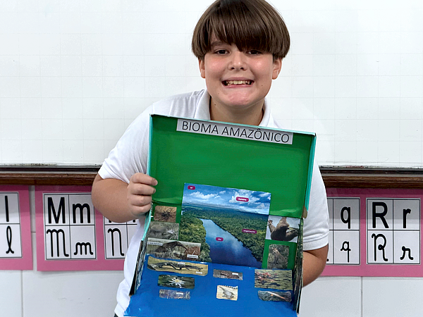 No dia 10 de abril de 2026, a turma do 5º Ano se dirigiu à sala do 4º Ano para apresentar os trabalhos. De forma individual, cada aluno explicou as características e particularidades do bioma desenvolvido. Em seguida, no dia 17 de abril, os estudantes também compartilharam suas produções com a turma do 8º Ano, ampliando a troca de experiências entre diferentes anos escolares.