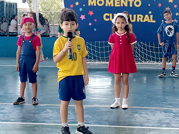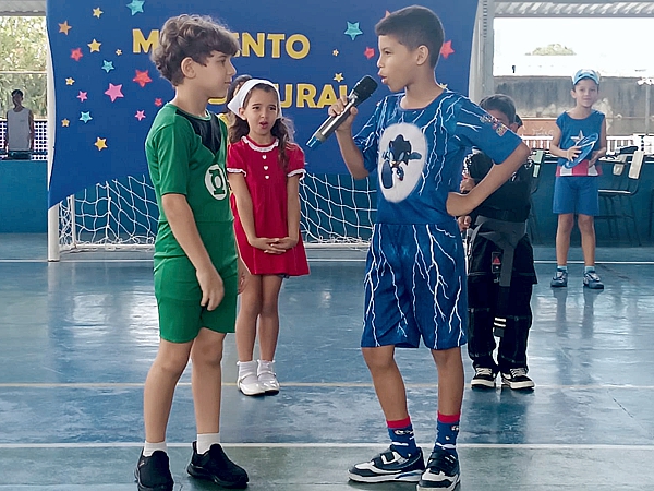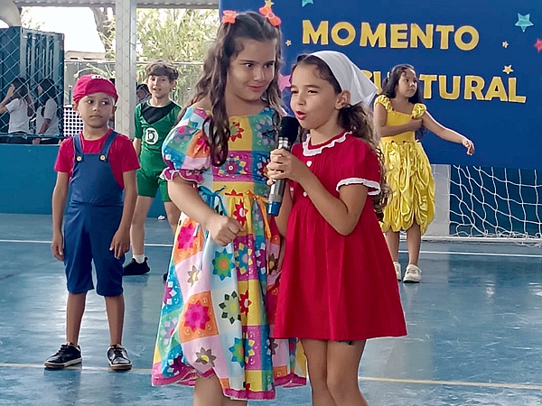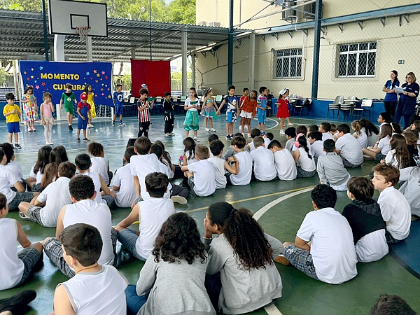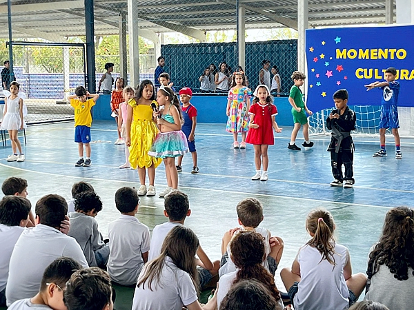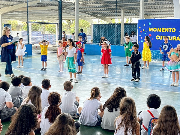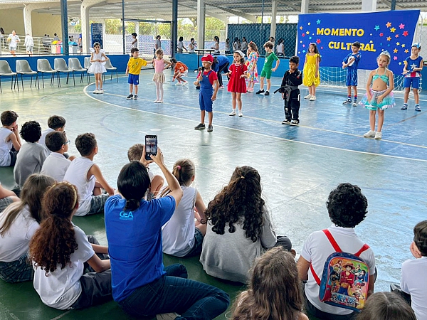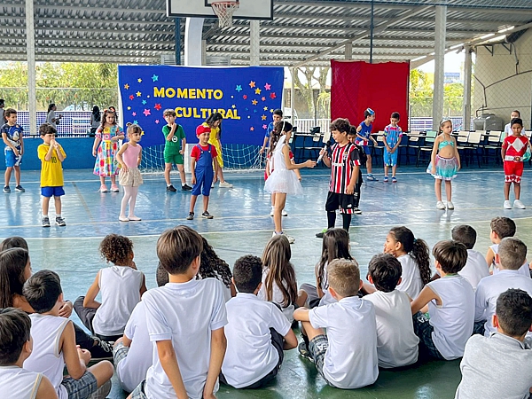 A quadra poliesportiva do Centro Educacional de Aracruz (CEA) foi palco de aprendizado e diversão na manhã do dia 2 de outubro, durante um Momento Cultural especial que celebrou o encerramento de um projeto pedagógico interdisciplinar do 2º trimestre. Os protagonistas foram os alunos do 1º Ano “A” do Ensino Fundamental (matutino), que apresentaram um recital de parlendas e a música “Pular Corda”,do grupo Patati Patatá, para colegas de outras turmas.