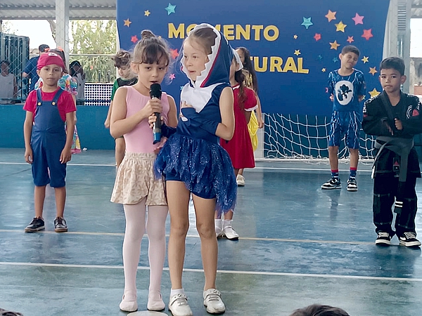 Durante o recital, os alunos se divertiram com rimas e brincadeiras, mostrando como o aprendizado pode estar aliado ao prazer de brincar. “As parlendas introduzem a estrutura de textos curtos, facilitando a compreensão e a escrita. Elas ajudam a criança a perceber os sons das palavras, a rima e as aliterações, aprimorando a audição e a identificação de fonemas, o que contribui diretamente para a expressão oral e o gosto pela leitura”, explicou a professora Rita.