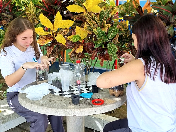 “Um terrário fechado funciona como um miniecossistema. A partir de agora, os alunos estão na fase de análise das mudanças ocorridas dentro do terrário, a proposta é que percebam os diferentes ciclos da natureza. Como esse terrário ficará fechado teremos o ciclo da água, em evidência, que é o permanente processo de transformação da água na natureza, passando de um estado para outro: líquido, sólido ou gasoso”, explicou a professora de Ciências.